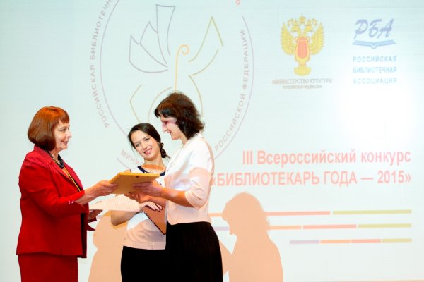 Следующий >< ПредыдущийС. Ф. Бартова, член жюри III Всероссийского конкурса «Библиотекарь года», член Правления РБА, председатель Секции публичных библиотек РБА, вручает почетную грамоту О. А. Малаховской, главному библиотекарю Библиотеки им. Д. С. Лихачева МБУ «Муниципальная библиотечно-информационная система г. Новокузнецка» (Кемеровская область)